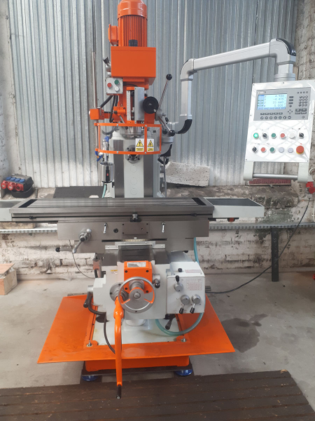 Średniej wielkości frezarko-wiertarka produkcyjna EUROMET FW30 wyposażona jest we wrzeciono poziome oraz głowicę do frezowania pionowego. Pionowy wrzeciennik ma możliwość obrotu wraz z belką górną, oraz możliwe jest podparcie wrzeciona poziomego na belce (po założeniu okularu). Wrzeciennik pionowy ma możliwość pochylania oraz posiada automatyczny wysuw wrzeciona. Maszyna przeznaczona do zakładów produkcyjnych i narzędziowni. Nowoczesna, sprawdzona konstrukcja zapewnia długotrwałe użytkowanie.