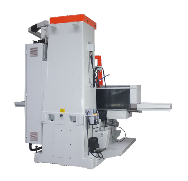 Strong and massive EUROMET FP215 vertical milling machine with a large work table based on wide rectangular guides, working in the X and Y axes and a rigid vertical swivel head in two planes, moved along vertical guides (Z axis) by means of an electric drive. It is a typical machine for industrial heavy workpiece machining. The main advantages of the milling machine are the placement of the workpiece at a constant height relative to the ground, rigid, strong structure, large table surface, the ability to work as a vertical and horizontal milling machine, large vertical travel of the head.