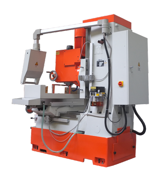 The EUROMET FP40 vertical milling machine is characterized by the possibility of moving the table along the X, Y axes and the entire headstock along the column guides. The work table is therefore at a constant height relative to the ground. This machine is ideal for processing tools, instruments, engine parts, etc.