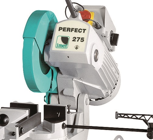 Przecinarka tarczowa IMET PERFECT 275 jest wszechstronnym i łatwym narzędziem pracy dzięki funkcji szybkiego startu przyciskiem start/stop na uchwycie. Maszyna wyposażona jest w przednie imadło z zabezpieczeniem przed zadziorami, przycisk start w rękojeści oraz regulowany zderzak pozycjonujący. Głowica silnika jest jednoczęściowa, wytrzymała i niezawodna z układem smarująco-chłodzącym napędzanym pompą i dodatkowym filtrem w zbiorniku. Wrzeciono uchwytu tarczy ma 32 mm, a ostrze jest całkowicie chronione metalową osłoną.