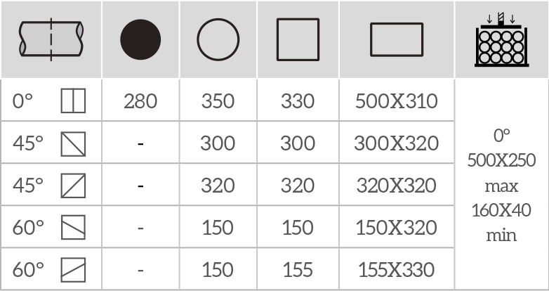 • Cięcie pod kątem: w prawo 0° - 45° - 60°; w lewo 0° - 45° - 60°