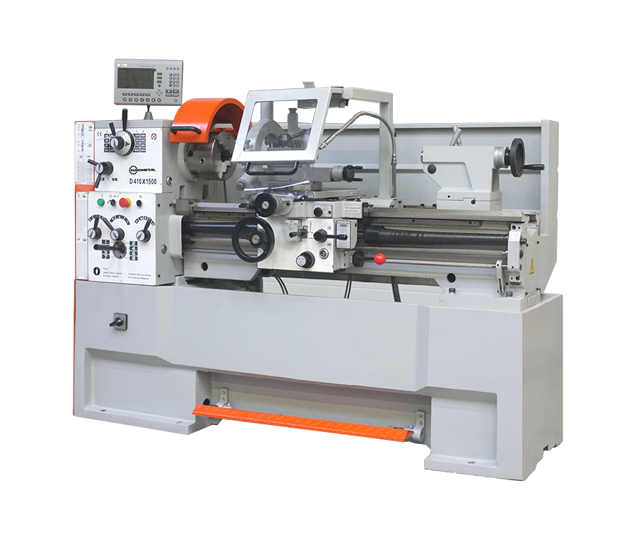 Tokarka uniwersalna EUROMET D410x1500 przeznaczona do produkcji małoseryjnej oraz do pracy w narzędziowniach lub zakładach utrzymania ruchu. Żeliwny odlew podstawy łoża gwarantuje bardzo wysoką sztywność i stabilność maszyny.